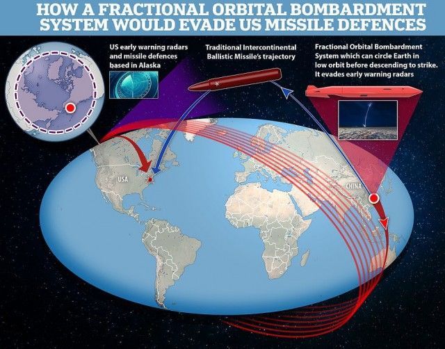 Los observadores dicen que el arma parece ser una actualización de la tecnología soviética de la era de la Guerra Fría llamada "Sistema de bombardeo orbital fraccional", o FOBS.