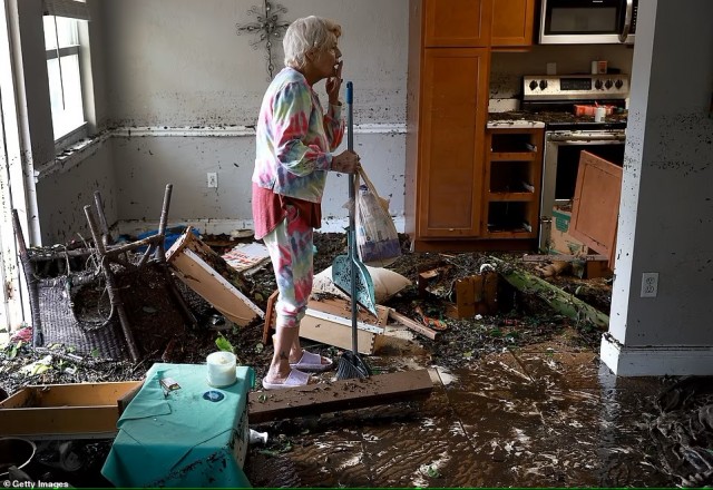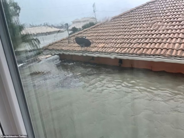 Imágenes horribles muestran agua llena de escombros que inunda la planta baja de las casas, lo que lleva a los residentes a correr a niveles más altos.