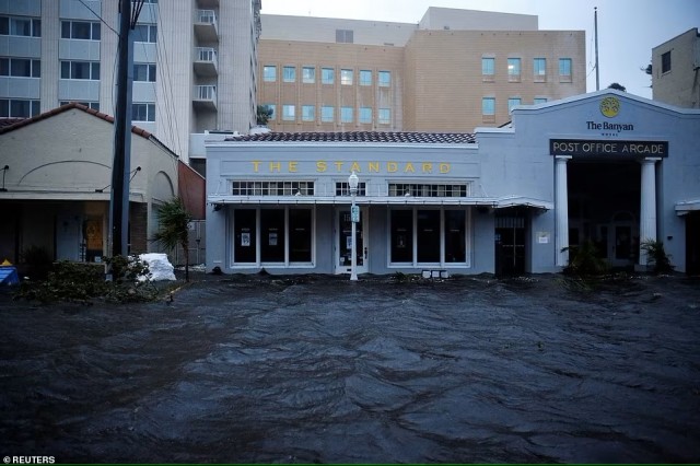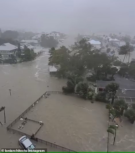Fort Myers ha sido tragado por una marejada ciclónica de 18 pies mientras los huéspedes del hotel filman sus pertenencias flotando fuera de los edificios.